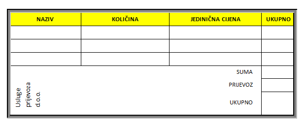 Napravi tablice kao na slici. Prvu popuni podacima, a za ćeliju suma upotrijebi formulu.